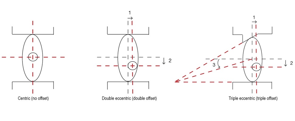 The butterfly valve can be centric or eccentric. On a centric (concentric) butterfly valve the stem is centered in the middle of the disc and the disc centered in the bore. The eccentric butterfly valve has one or more stems (stub shafts) located offset from the center according to the categories of double offset butterfly valves and triple offset butterfly valves.